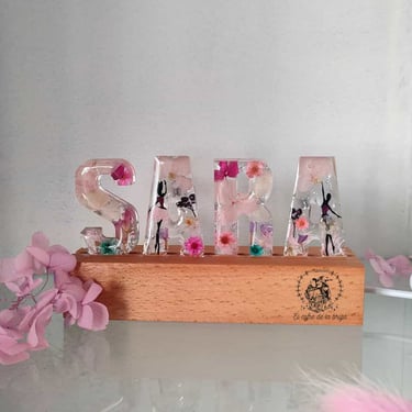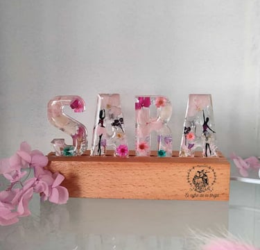 Personaliza tu espacio con tu estilo propio con estas exclusivas lámparas de nombre creadas con letras de resina y soporte de madera con luz led.