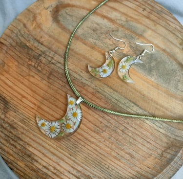 Todas las piezas son cuidadosamente confeccionadas a mano con mucha delicadeza y amor. Entre las creaciones que encontrarás, algunas están creadas con flores y plantas naturales, muchas de las cuales son recolectadas, secadas y prensadas por nosotros.