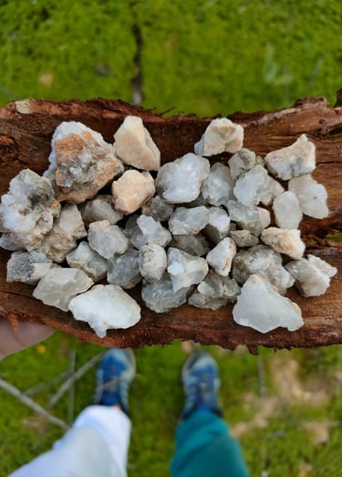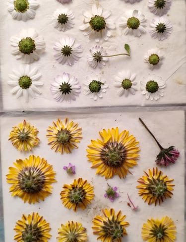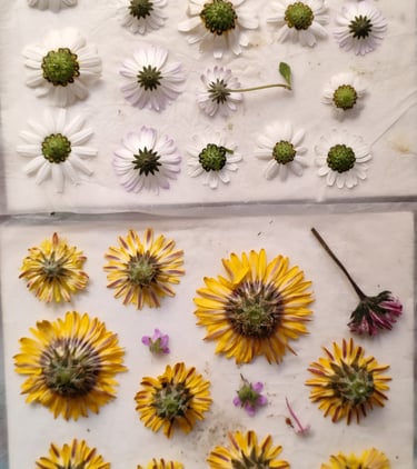 En muchas de las creaciones de piezas encapsuladas utilizo flores naturales que yo misma recolecto y seco para su posterior encapsulado. Así como otros elementos naturales.